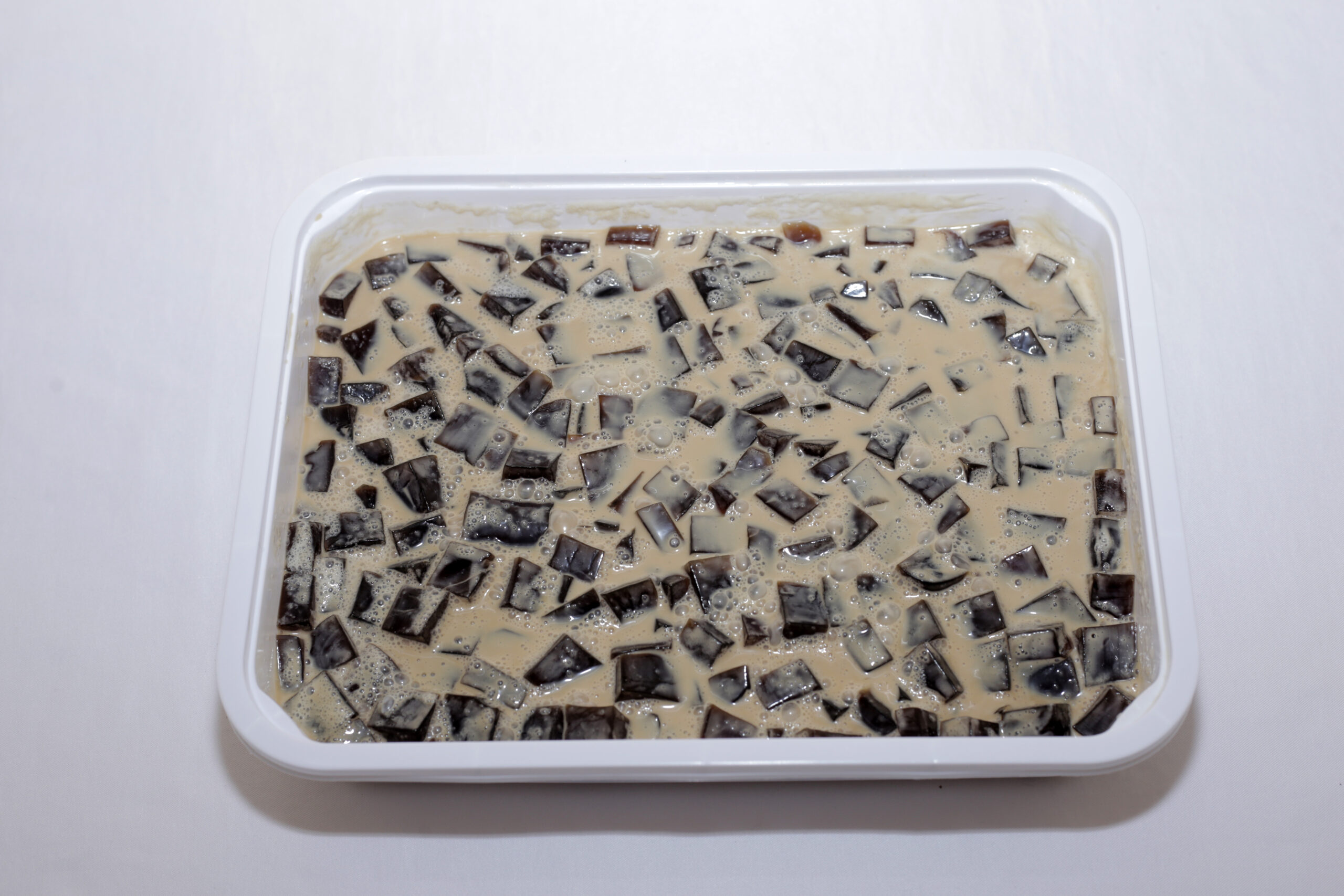 A refreshing dessert made with coffee-flavored gelatin cubes served with sweetened cream or condensed milk. Popular for its balance of bitterness and sweetness.